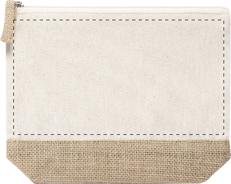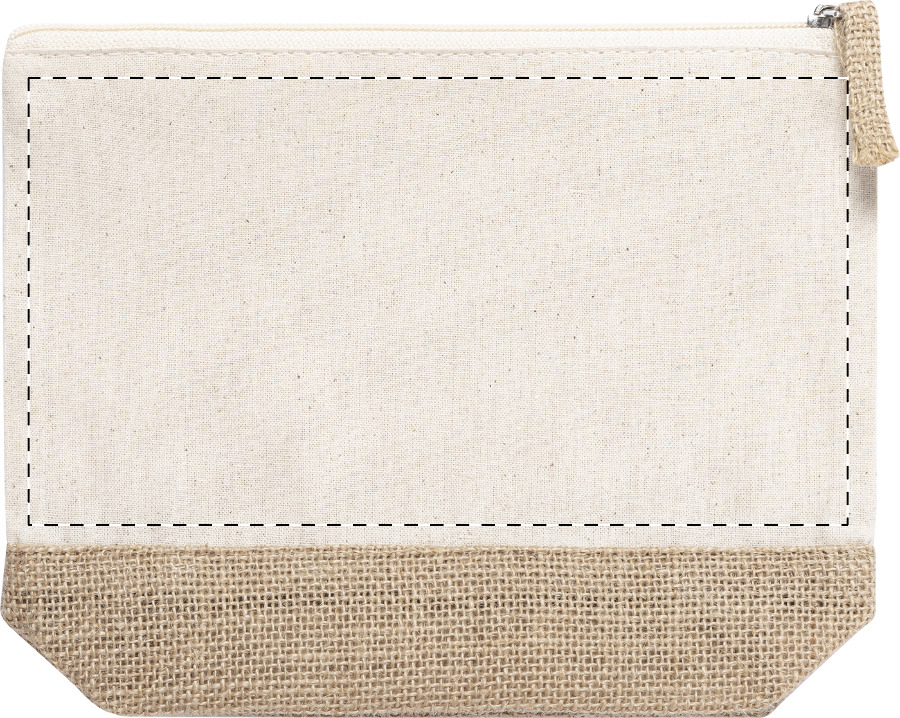 Kosmetická taška se zavíráním na zip vyrobená z bavlny a laminované juty.