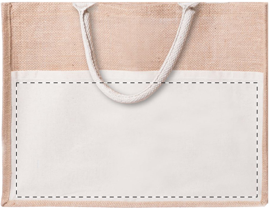 Plážová taška z laminované juty s bavlněnými uchy a přední kapsou.
