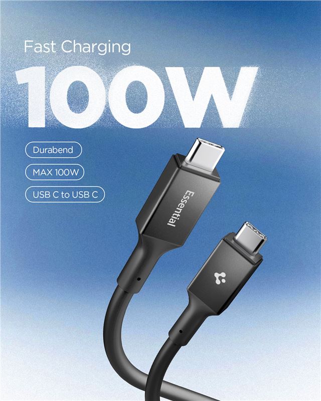 Kabel Spigen Essential USB C to USB C 100W Cable, EB10010CC - černá