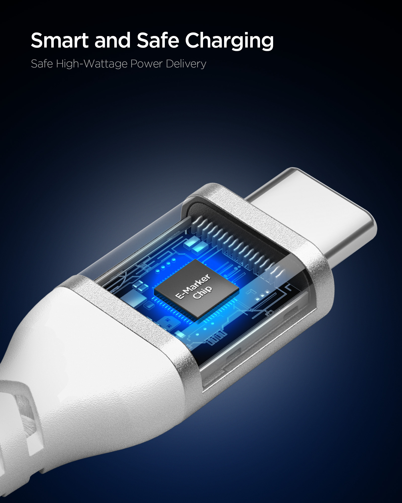 Robustní propojovací kabel v bílém textilním provedení podporuje rychlé nabíjení výkonem až 100 W. Zajišťuje stabilní přenos energie i dat mezi moderními zařízeními s konektorem USB-C, jako jsou notebooky, tablety či chytré telefony.