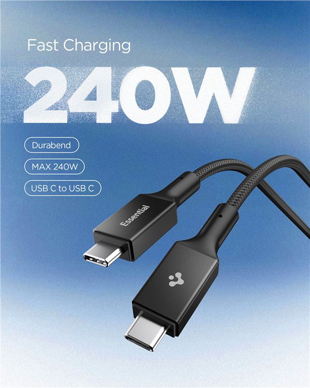 Kabel Spigen Essential USB C to USB C 240W Fabric Cable, EB24015CC - černá