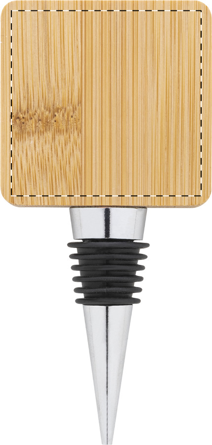 Kovová zátka na víno s čtvercovým bambusovým otvírákem na lahve.