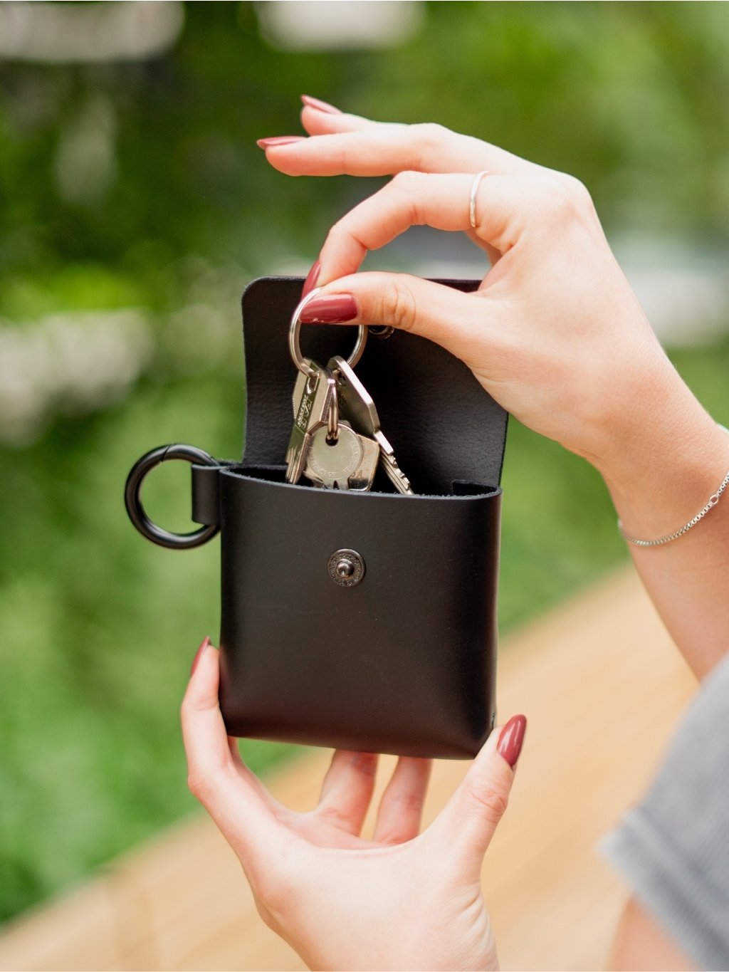Tato kapsička z 2 mm silné italské třísločiněné usně je ideální na drobnosti nebo klíče, které chcete mít bezpečně uložené a vždy po ruce. Díky zabarvenému hladkému rubu nepotřebuje podšívku a je krásně odolná. S kompaktními rozměry cca 10 × 10 × 3,5 cm a hmotností jen cca 0,1 kg je lehká a praktická. Snadno ji připnete pomocí kulaté karabinky dovnitř tašky Laura, na poutko kalhot, vodítko nebo opasek.