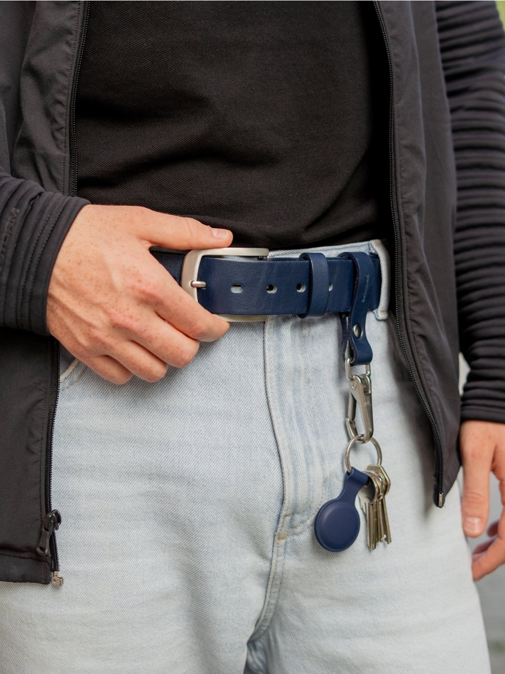 Masivní kožená klíčenka, kterou můžete nosit i jako poutko na opasek, je ideální pro zavěšení klíčů nebo čehokoli, co chcete mít vždy po ruce. Díky své pevnosti zvládne utáhnout tři bečky piva nebo desetinu Fábie – o její odolnosti tedy není pochyb. Elegantní nerezová karabina perfektně ladí s našimi riflovými pásky a dodává klíčence stylový vzhled. Na přání Vám navíc z vnější strany vyrazíme originální monogram, který z ní udělá osobitý doplněk nebo skvělý dárek.