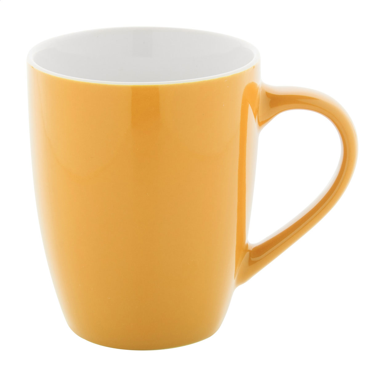Vysoce kvalitní barevný keramický hrnek s bílým vnitřkem, 340 ml. V kraftové papírové krabici.