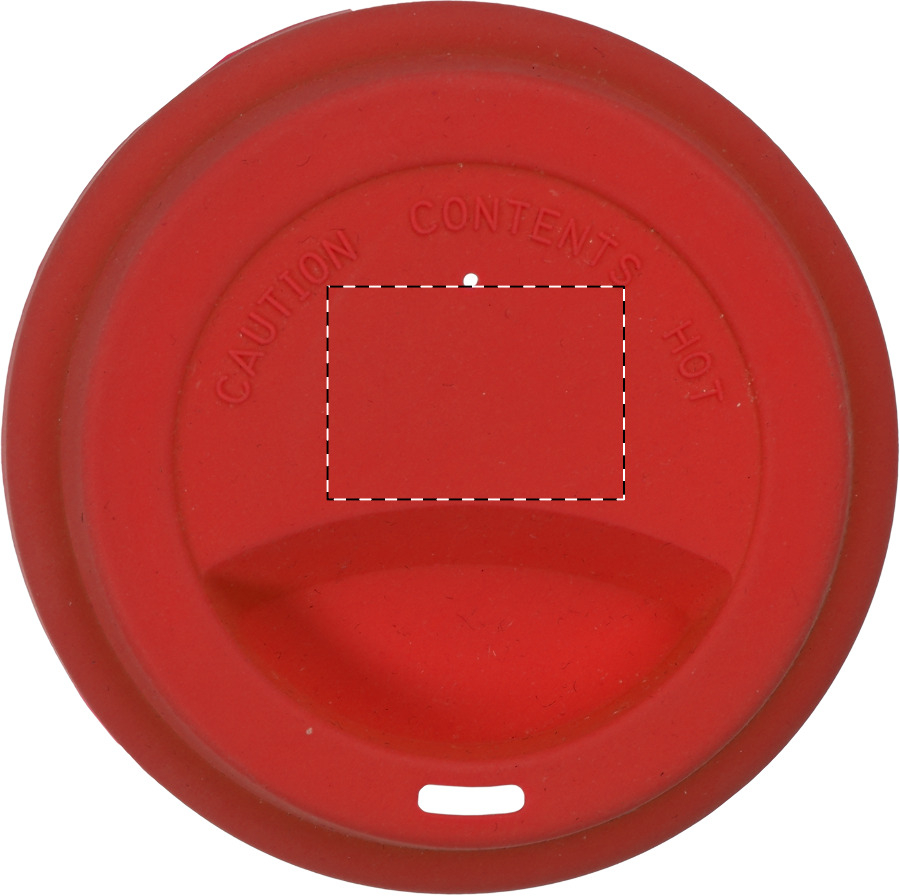 Keramický hrnek se silikonovým víčkem a páskem pro chycení. Objem 400 ml.