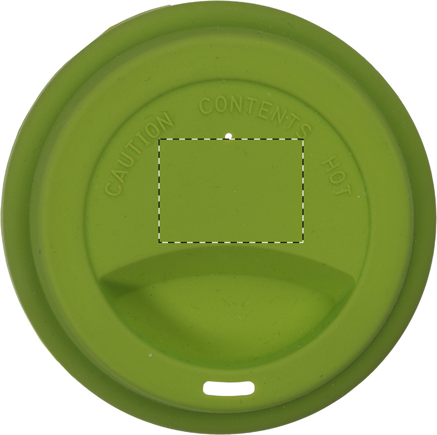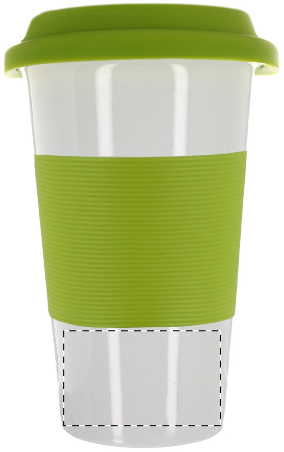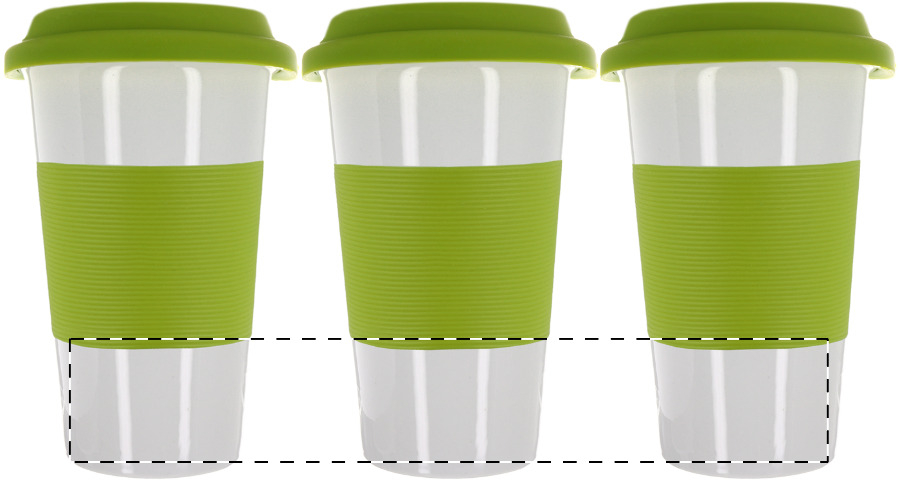 Keramický hrnek se silikonovým víčkem a páskem pro chycení. Objem 400 ml.