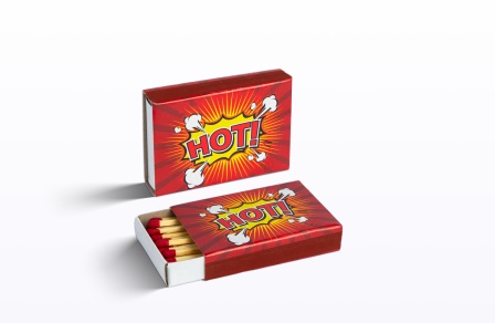 Klasické zápalky v papírové krabičce se škrtátkem na jedné straně. Rozměr: 53x36x12,5 mm. Průměrný počet zápalek: 38. Délka zápalky: 43 mm. Standardní povrchová úprava: uv lak. Barva hlaviček: červená, modrá, zelená, žlutá, bílá. Množstevní tolerance +/- 10 %.