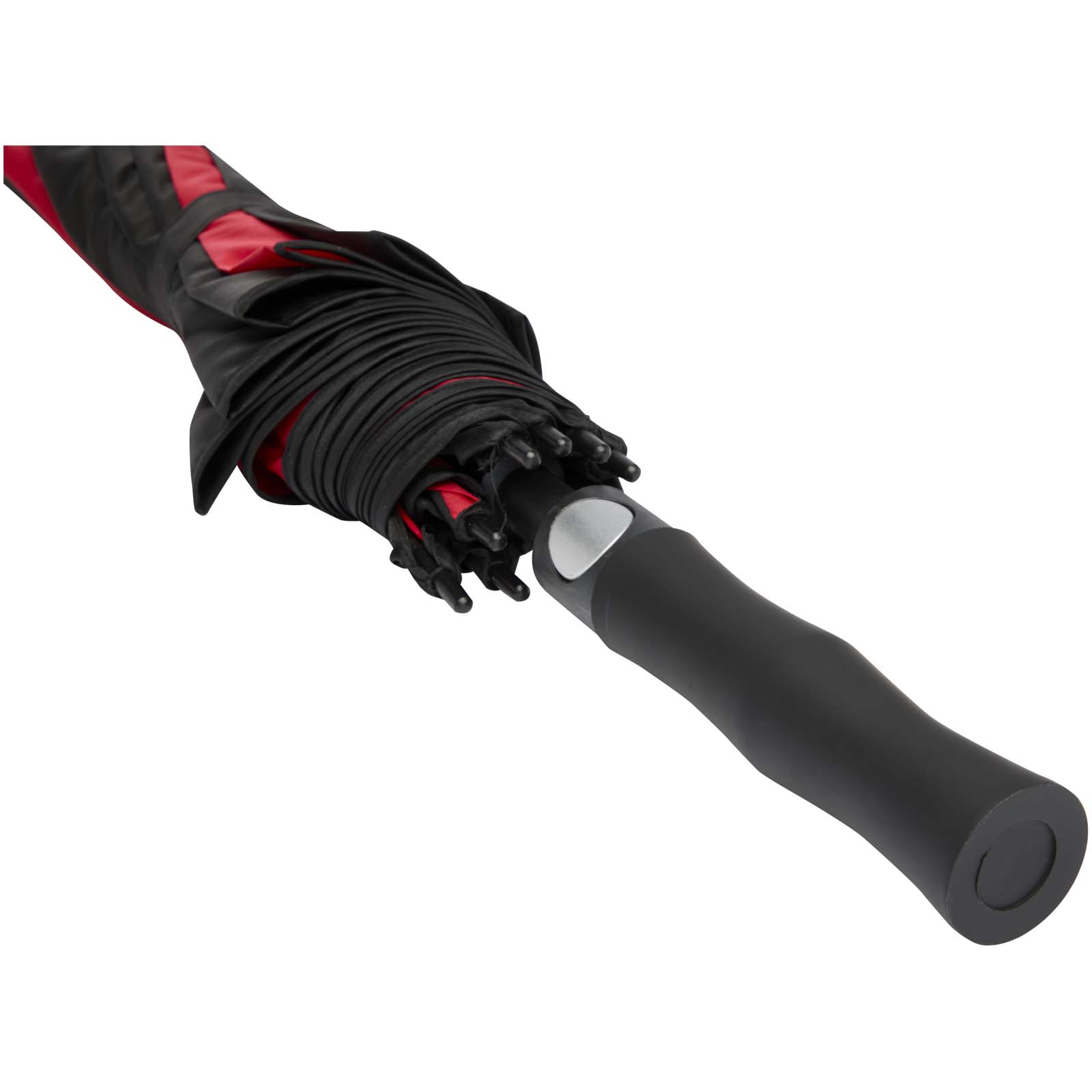 Větruodolný golfový deštník Jeff disponuje prostornou polyesterovou stříškou o šířce 140 cm, která pohodlně chrání více lidí před nepřízní počasí. Robustní laminátová tyč a rám poskytují vynikající flexibilitu a silnou odolnost vůči silnému větru. Praktická plastová rukojeť s tlačítkem pro automatické otevírání zajišťuje rychlé a snadné ovládání. Kontrastní panely stříšky představují perfektní příležitost pro výrazný a poutavý branding – ideální pro akce, reklamu nebo každodenní použití.