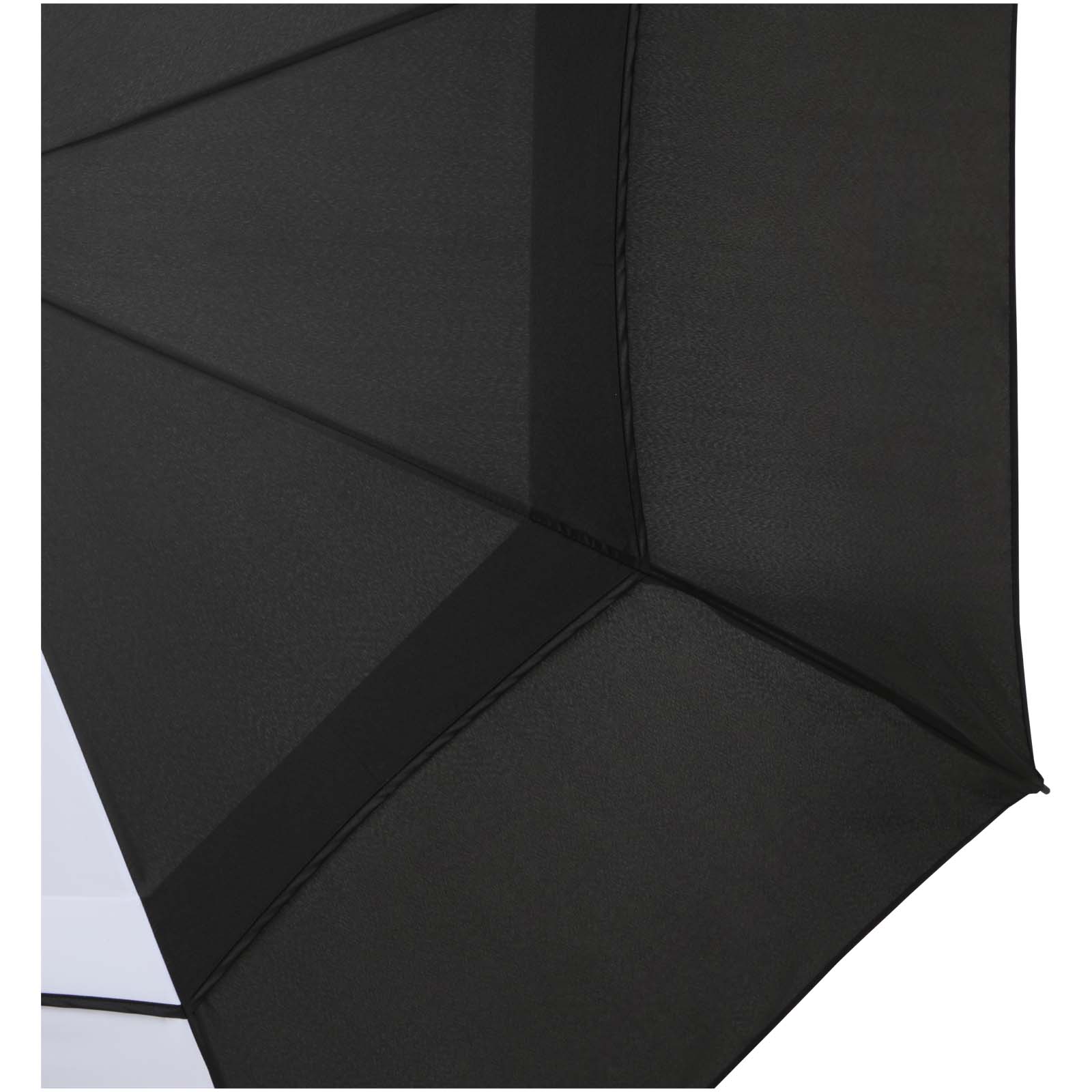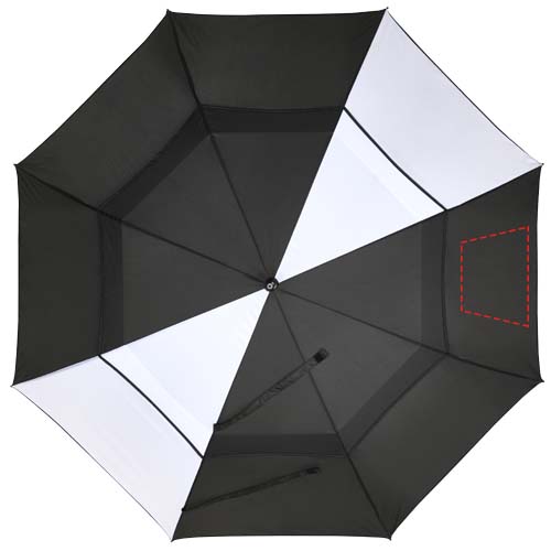 Větruodolný golfový deštník Jeff disponuje prostornou polyesterovou stříškou o šířce 140 cm, která pohodlně chrání více lidí před nepřízní počasí. Robustní laminátová tyč a rám poskytují vynikající flexibilitu a silnou odolnost vůči silnému větru. Praktická plastová rukojeť s tlačítkem pro automatické otevírání zajišťuje rychlé a snadné ovládání. Kontrastní panely stříšky představují perfektní příležitost pro výrazný a poutavý branding – ideální pro akce, reklamu nebo každodenní použití.