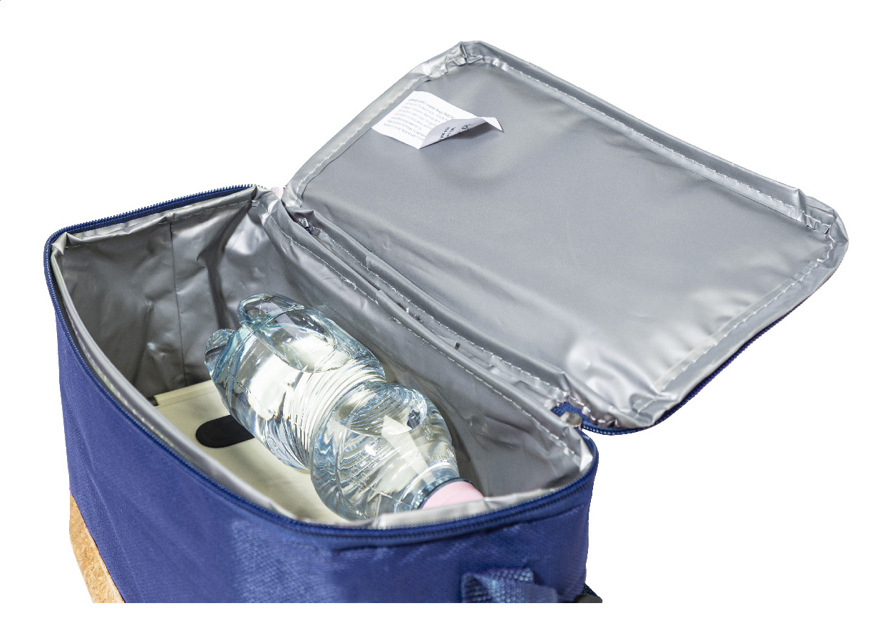 Chladicí taška na zip z 600D RPET polyesteru s přírodní korkovou základnou, PEVA polstrováním a nastavitelným ramenním popruhem. S výrazným štítkem RPET.