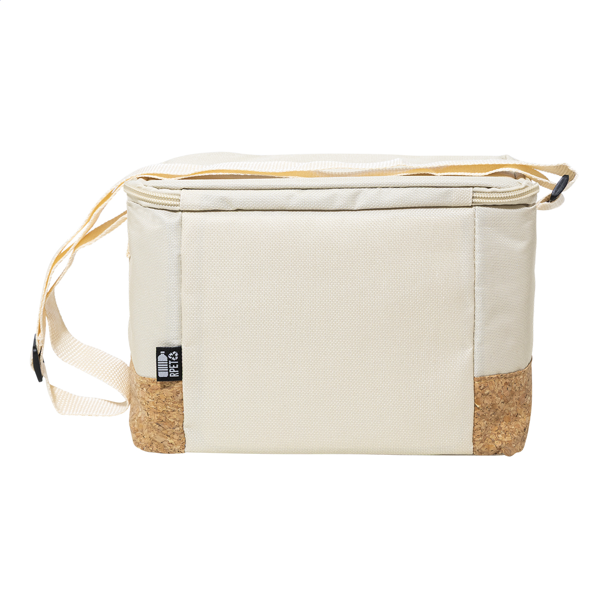 Chladicí taška na zip z 600D RPET polyesteru s přírodní korkovou základnou, PEVA polstrováním a nastavitelným ramenním popruhem. S výrazným štítkem RPET.