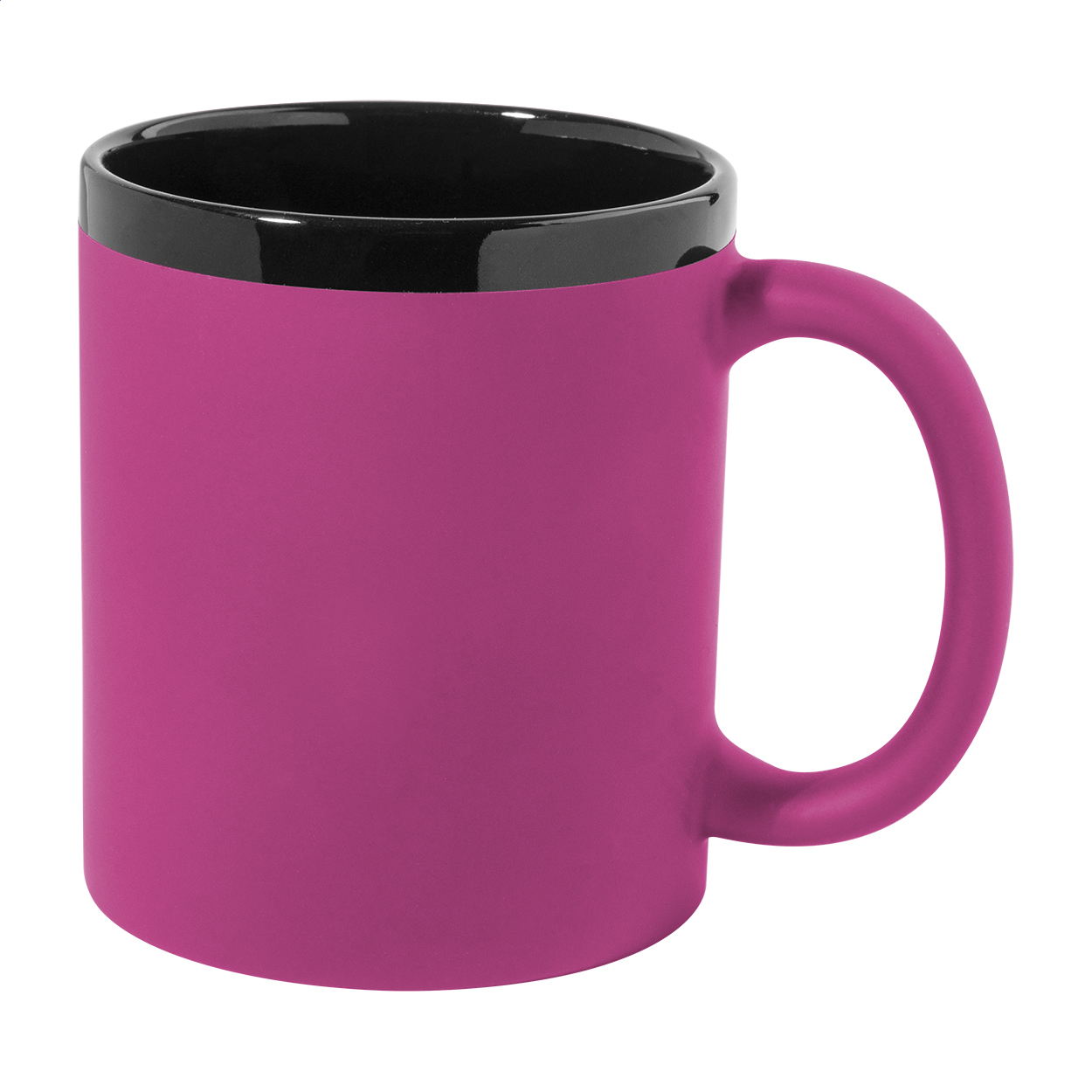 Keramický hrnek s měkkým pogumovaným povrchem a černým vnitřkem a okrajem, 300 ml. Se speciálním povrchem pro gravírování, gravírované logo ladí s barvou na vnitřní straně. V krabičce z kraftového papíru.