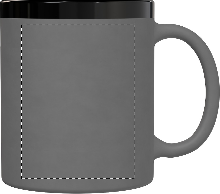 Keramický hrnek s měkkým pogumovaným povrchem a černým vnitřkem a okrajem, 300 ml. Se speciálním povrchem pro gravírování, gravírované logo ladí s barvou na vnitřní straně. V krabičce z kraftového papíru.