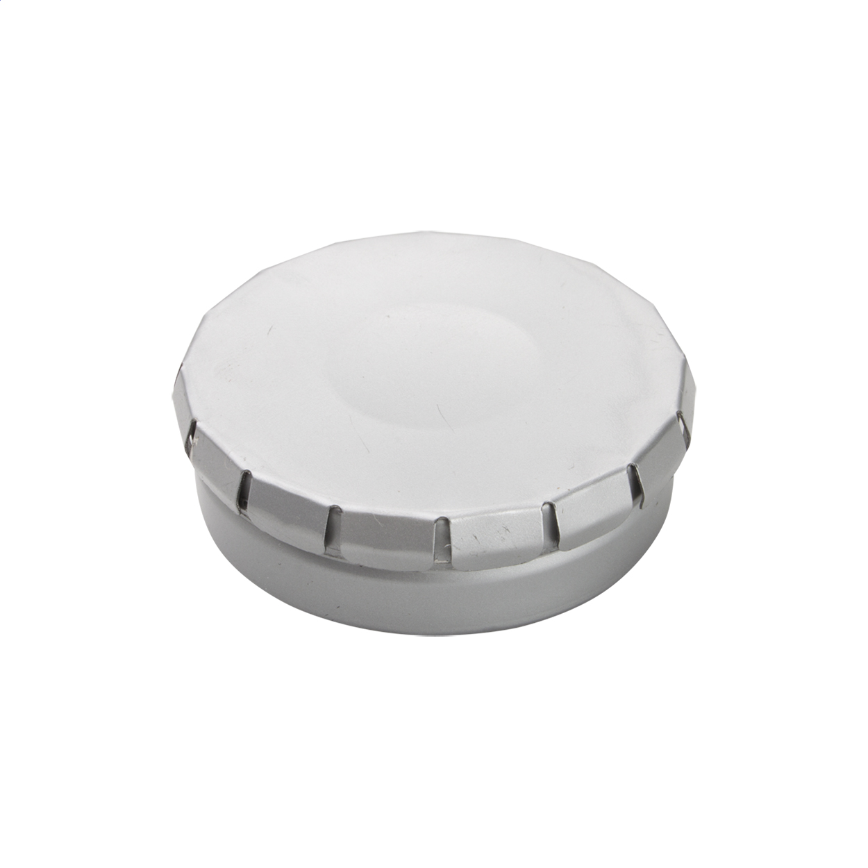Kulatá kovová krabička s 12 gramy mentolových bonbonů. Otevíraní stisknutím kovového vršku.