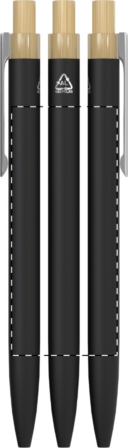 Nadčasové černé kuličkové pero z recyklovaného hliníku představuje elegantní cestu k ochraně přírody. Pogumované tělo brání únavě ruky při delším psaní a přírodní bambusové tlačítko tvoří atraktivní kontrast k tmavému kovu.