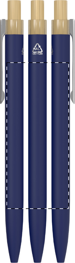 Profesionální modré kuličkové pero z recyklovaného hliníku vyniká hebkým pogumovaným povrchem pro maximální pohodlí. Kombinace kovu, chromového klipu a přírodního bambusu vytváří esteticky vyvážený doplněk pro každodenní pracovní nasazení.