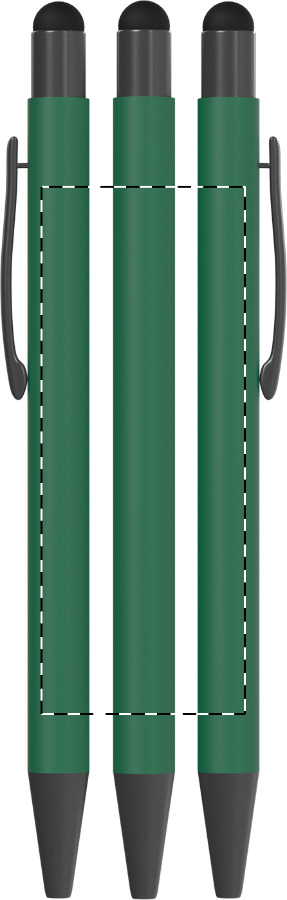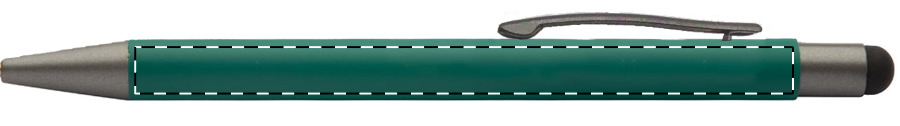 Elegantní zelená propiska s pogumovaným povrchem zajišťuje velmi příjemný a pevný úchop bez nepříjemného klouzání prstů. Hliníkové tělo zakončuje praktický stylus, který slouží k přesnému ovládání dotykových obrazovek mobilních telefonů a tabletů.
