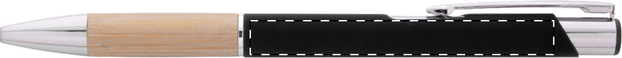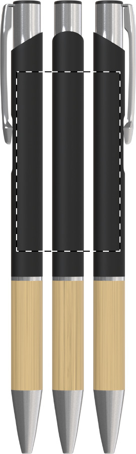 Decentní černé hliníkové pero s pogumovaným povrchem Soft-Touch a hřejivým bambusovým úchopem působí profesionálně a elegantně. Modrá náplň poskytuje hladkou stopu při psaní, zatímco speciální vrstva pod povrchem čeká na zrcadlové laserové gravírování.