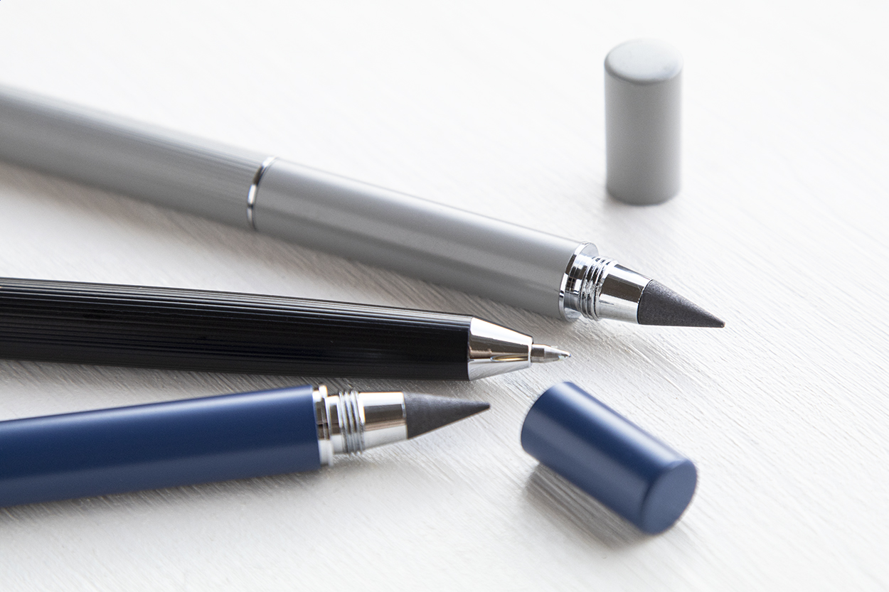 Kovové kuličkové pero s bezinkoustovým perem 2v1 ELEVOID - tmavě modrá