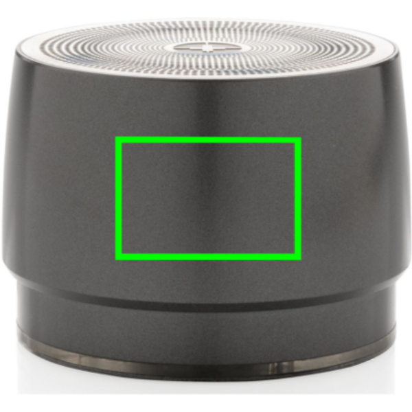 Šedý reproduktor z nerezové oceli spojuje masivní vzhled s precizním zvukovým přednesem o výkonu 5 W. Integrovaný subwoofer na spodní straně dodává hudbě hluboké a syté basy v nečekaně kompaktním těle.