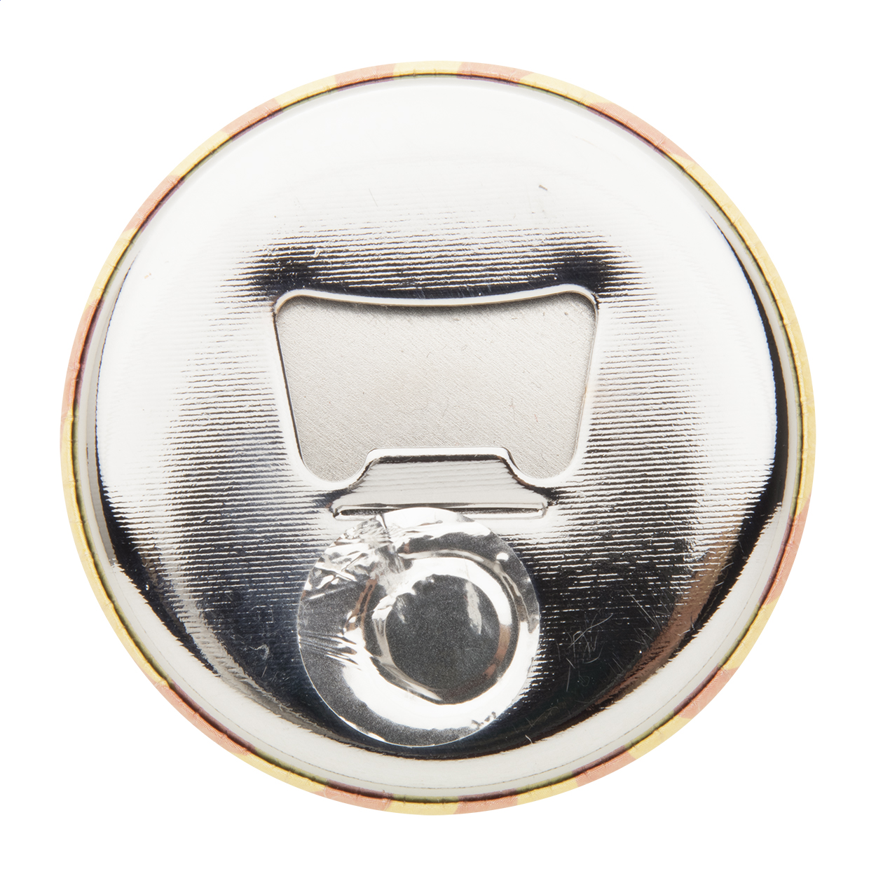 Kovový button s magnetem a otvírákem lahví. Cena zahrnuje digitální tisk na papír vložený do buttonu, nezahrnuje tiskovou přípravu. Minimální množství pro objednávku: 100 ks.