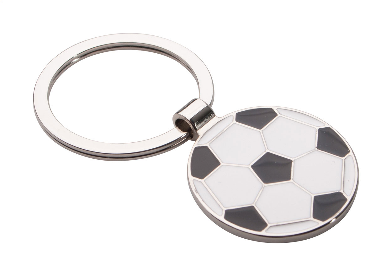 Kovový přívěsek na klíče ve tvaru míče. Dodáváno v černé dárkové krabičce.