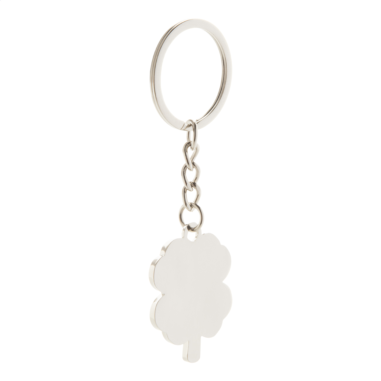 Kovový přívěsek na klíče ve tvaru čtyřlístku. V černé dárkové krabičce.