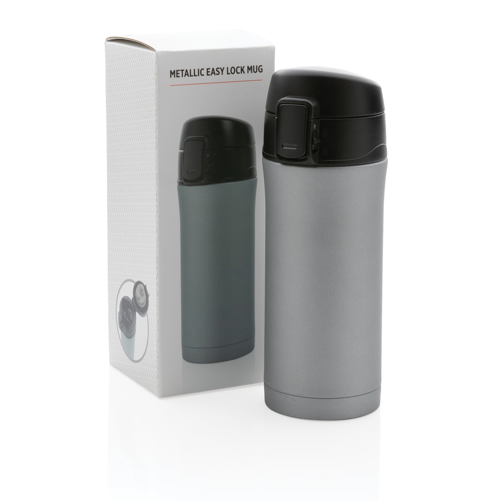 Kovový termohrnek KAPPA s uzamykatelným víčkem, 300 ml - šedá