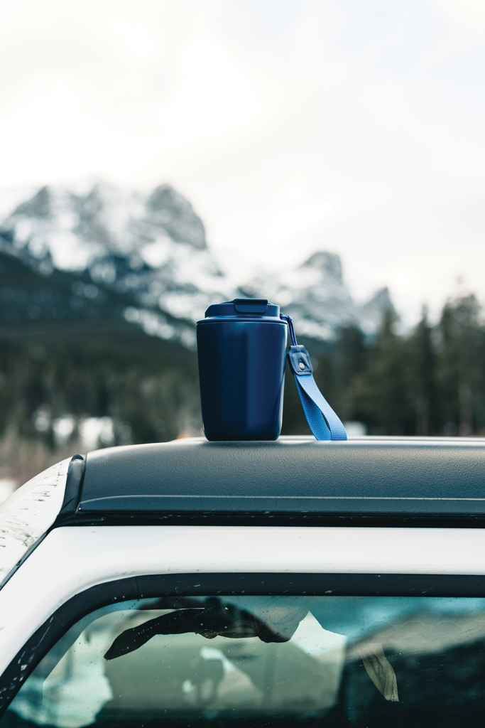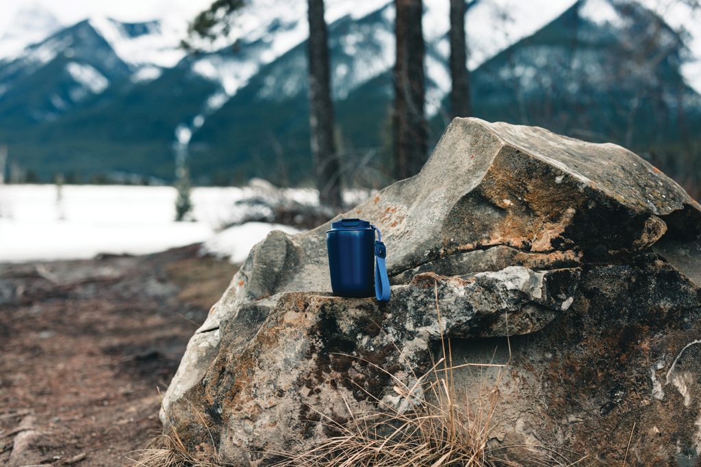 Kovový termohrnek LEANDR z recyklované nerezové oceli, 380 ml - modrá