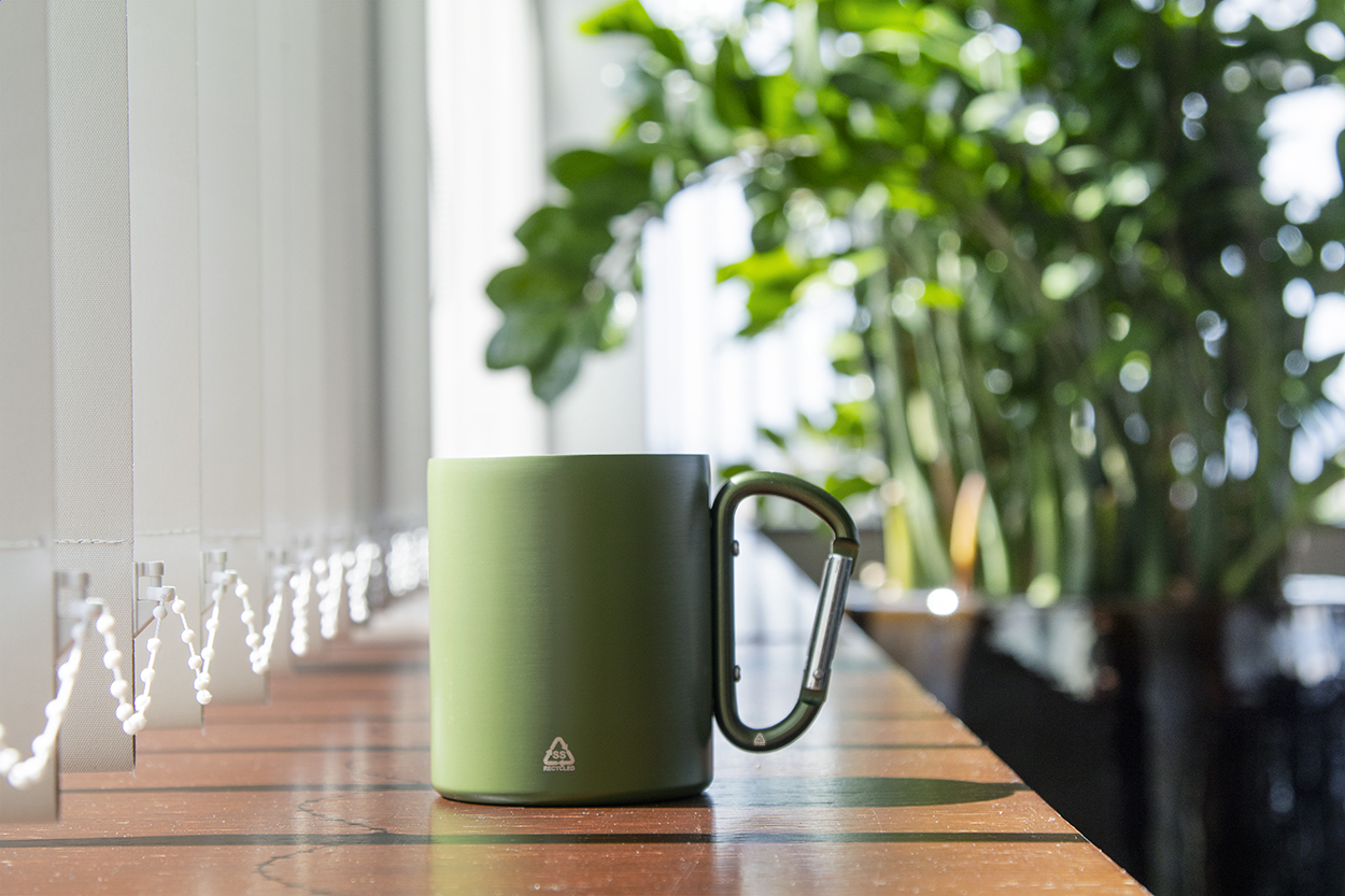 Kovový termohrnek ODISHA z recyklovaného materiálu, 300 ml - zelená