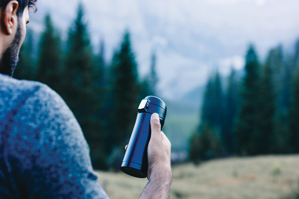 Elegantní černý termohrnek z recyklované oceli představuje udržitelnou cestu k pravidelnému pitnému režimu. Uzávěr Easy lock dovoluje pohodlné ovládání jednou rukou a bezpečně chrání obsah před nechtěným vylitím během přenášení v zavazadle.