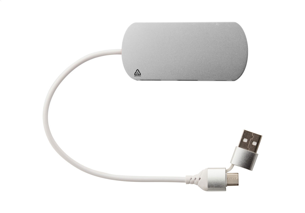 Kovový USB rozbočovač RALUHUB z recyklovaného hliníku - stříbrná