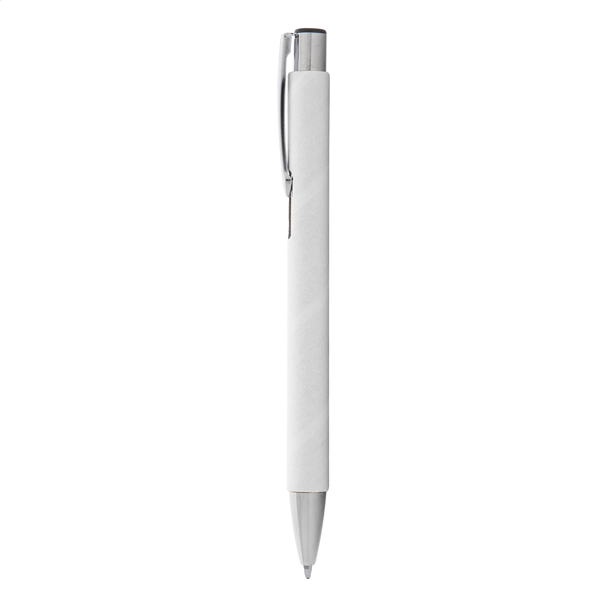 Kuličkové pero z recyklovaného papíru s kovovými částmi. S modrou náplní.