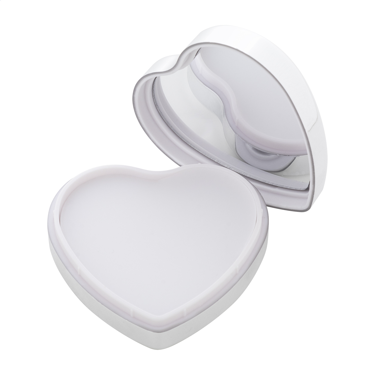 Vanilkový balzám na rty v recyklované ABS krabičce v kovové barvě ve tvaru srdce, s ochranou SPF15. Výrobek neobsahuje složky živočišného původu.