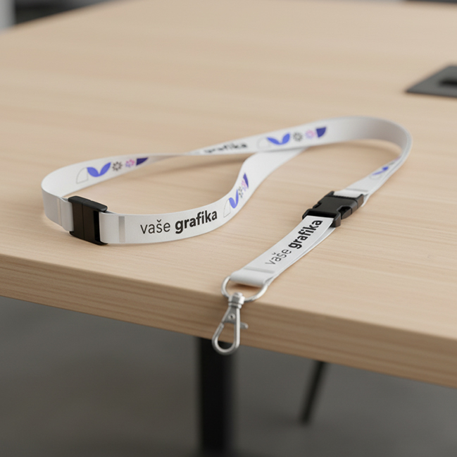 Lanyard s plnobarevným oboustranným tiskem, kovovou karabinou a bezpečnostním klipem poskytuje maximální funkčnost a 100% přizpůsobení vaší značce. Perfektní volba pro konference i firemní akce. Sublimace zajišťuje živý a trvanlivý potisk, odolnější než klasický sítotisk. Potisk může být jednostranný nebo oboustranný, cena zůstává stejná. Šířka: 20 mm, délka: 900 mm. Výroba již od 100 ks.
