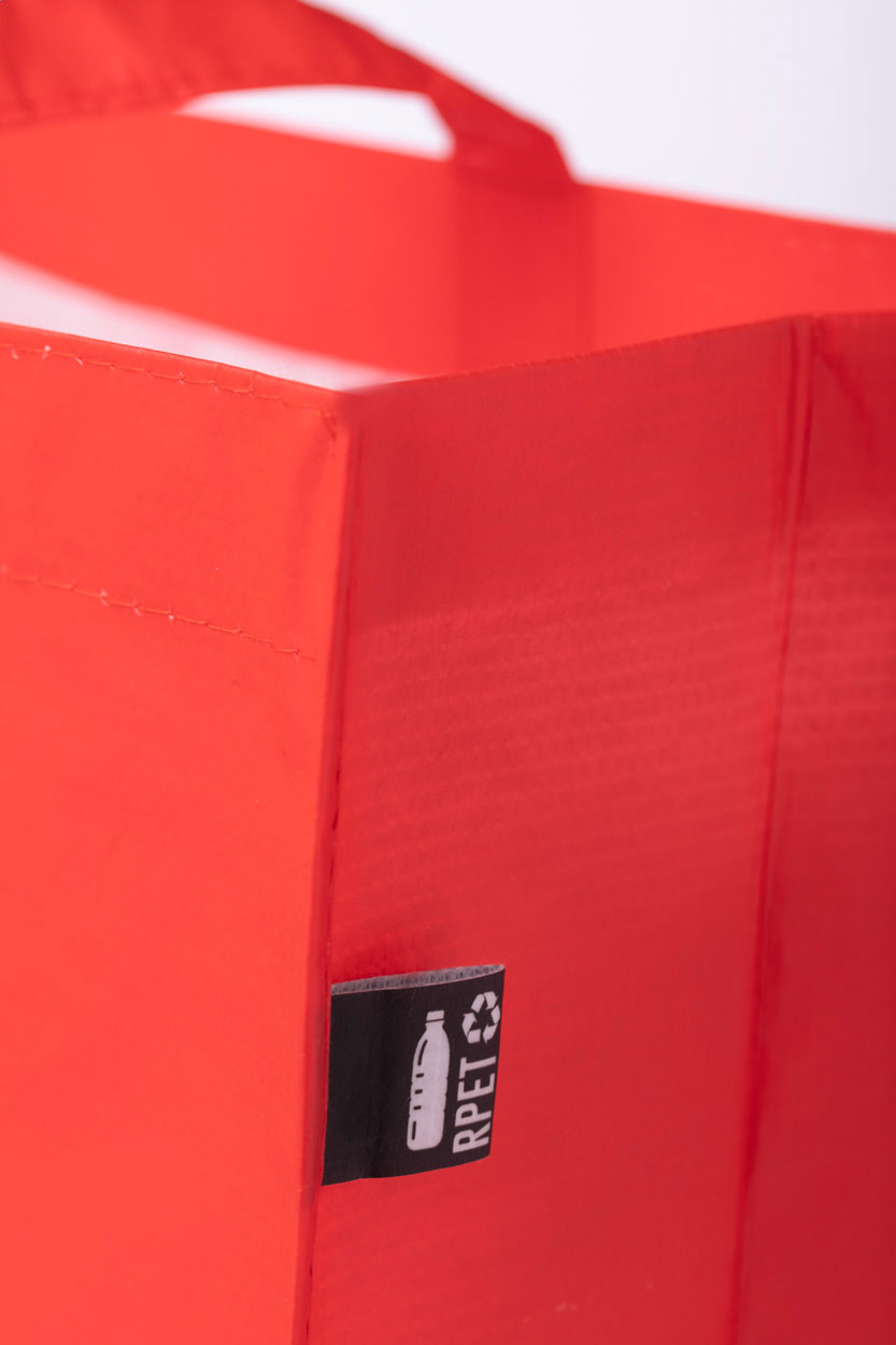 Prostorná nákupní taška s laminovaným povrchem vyrobená z recyklovaných PET lahví (gramáž 105 g/m2).