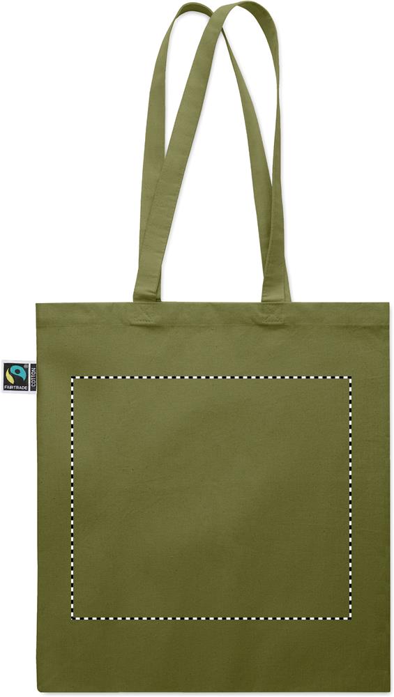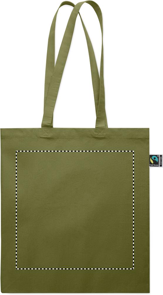 Nákupní taška s dlouhými uchy a klínkem vyrobená ze 180 g/m² Fairtrade bavlny.
