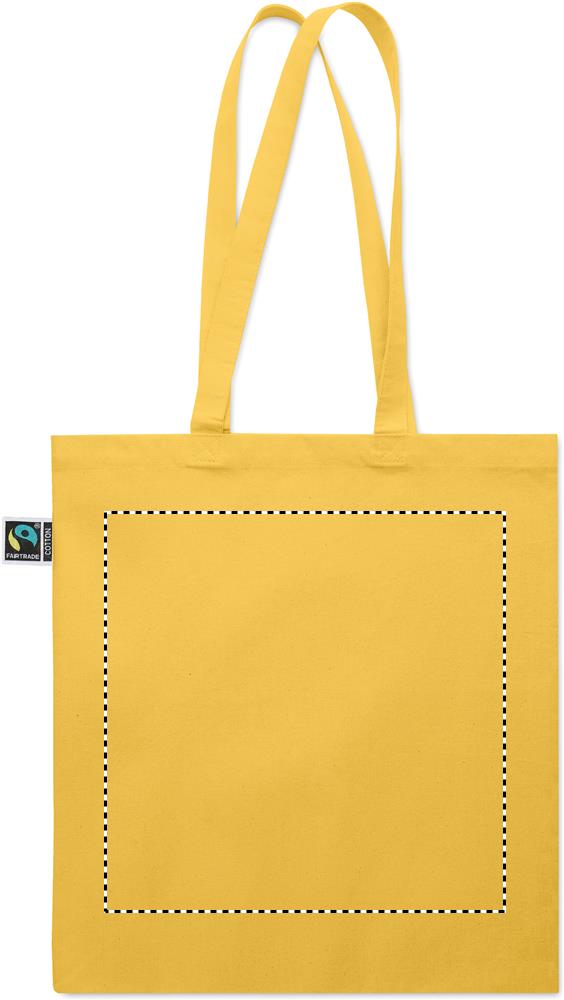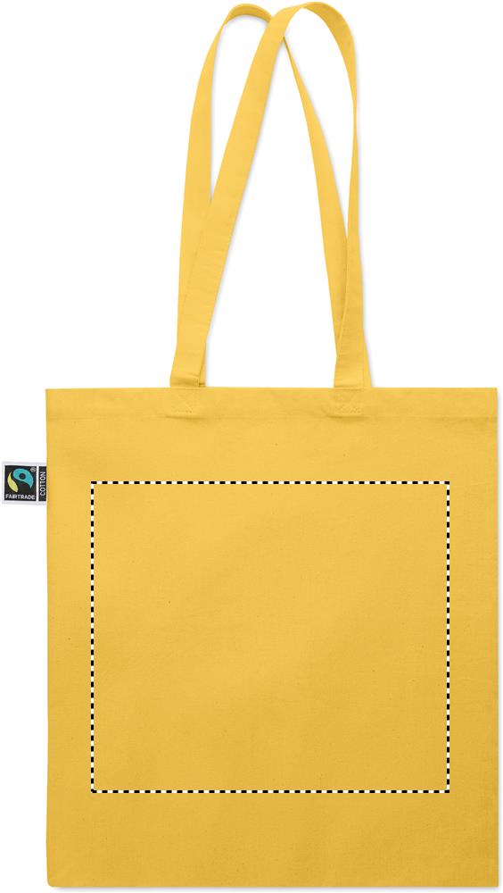 Nákupní taška s dlouhými uchy a klínkem vyrobená ze 180 g/m² Fairtrade bavlny.