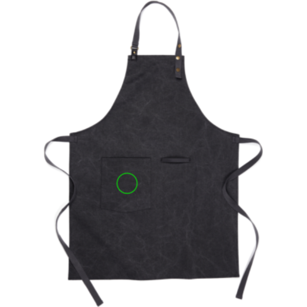 Stylová černá zástěra vyrobená z 87 % z recyklovaných materiálů spojuje ekologickou odpovědnost s moderní estetikou. Praktická přední kapsa a integrované poutko na utěrky zajišťují, že veškeré potřebné náčiní zůstane během práce neustále na dosah ruky.