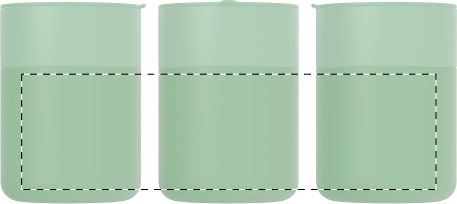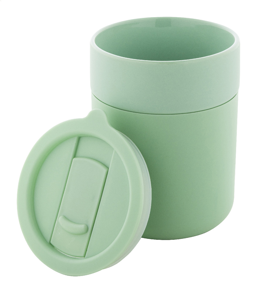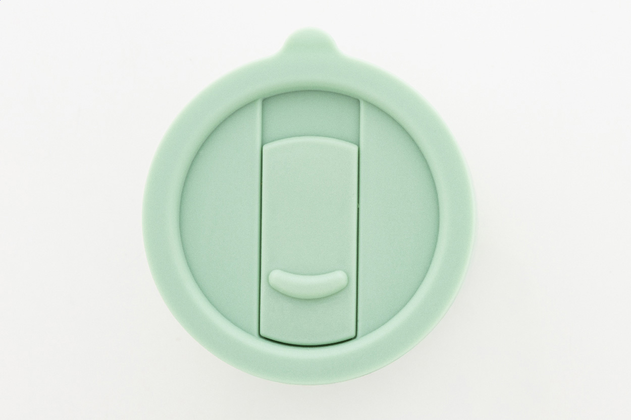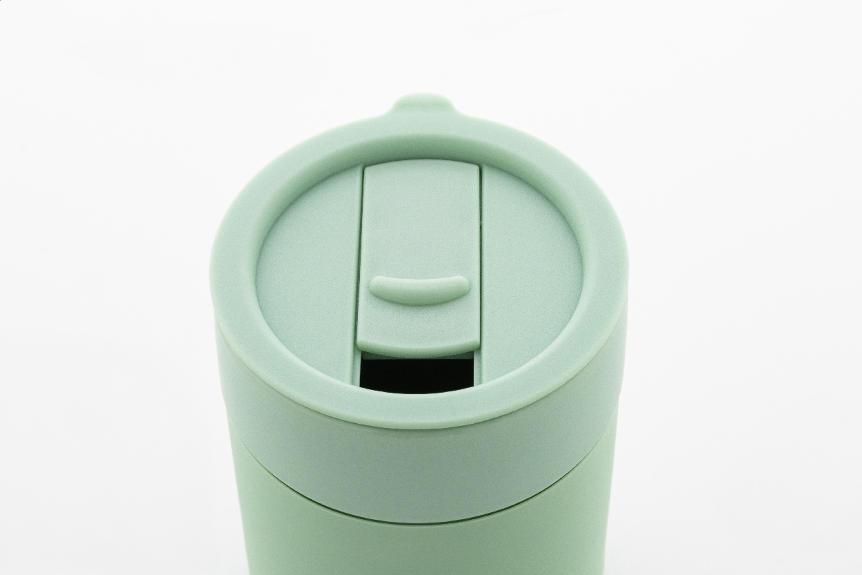 Silikonem potažený keramický cestovní kelímek s PP plastovým odkapávacím víčkem. 300 ml.