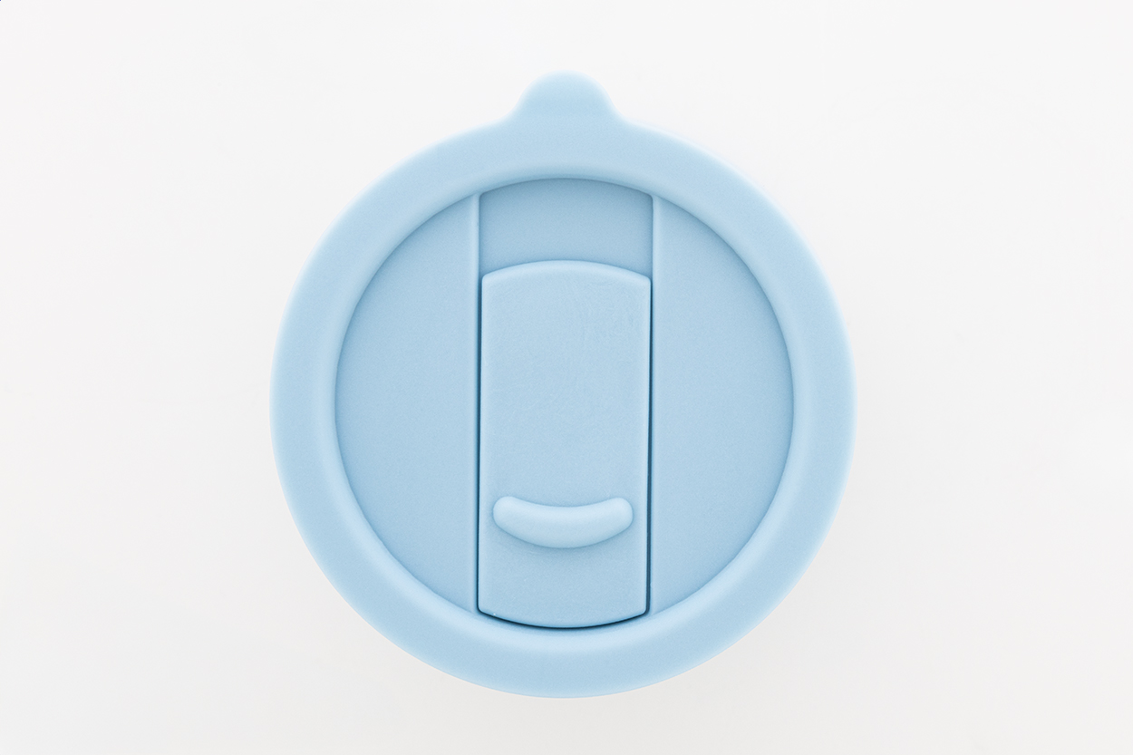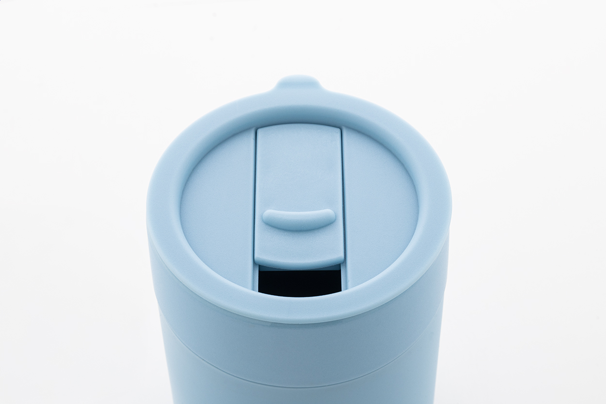 Silikonem potažený keramický cestovní kelímek s PP plastovým odkapávacím víčkem. 300 ml.