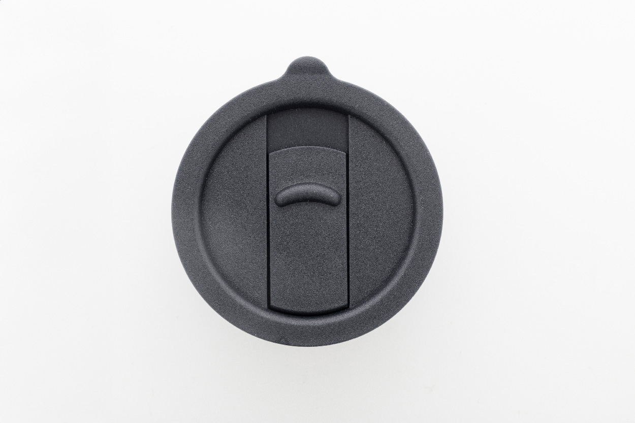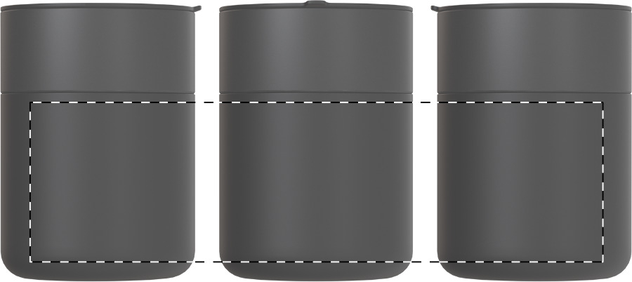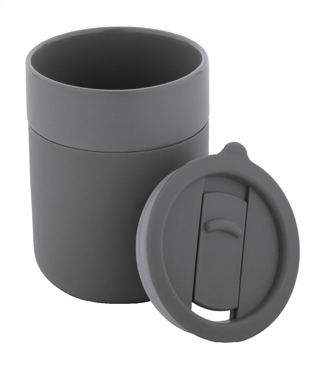 Silikonem potažený keramický cestovní kelímek s PP plastovým odkapávacím víčkem. 300 ml.