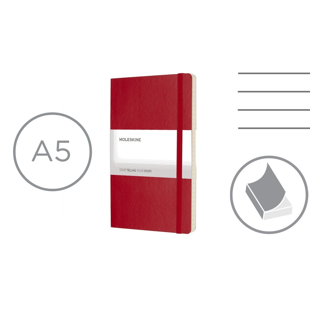 Linkovaný zápisník v měkkých deskách Moleskine, cca A5, 192 str - červená