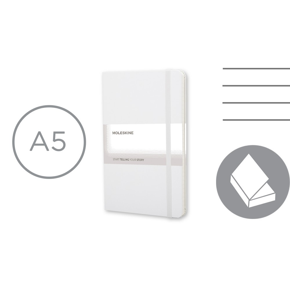Linkovaný zápisník v pevných deskách Moleskine, cca A5, 240 str - bílá