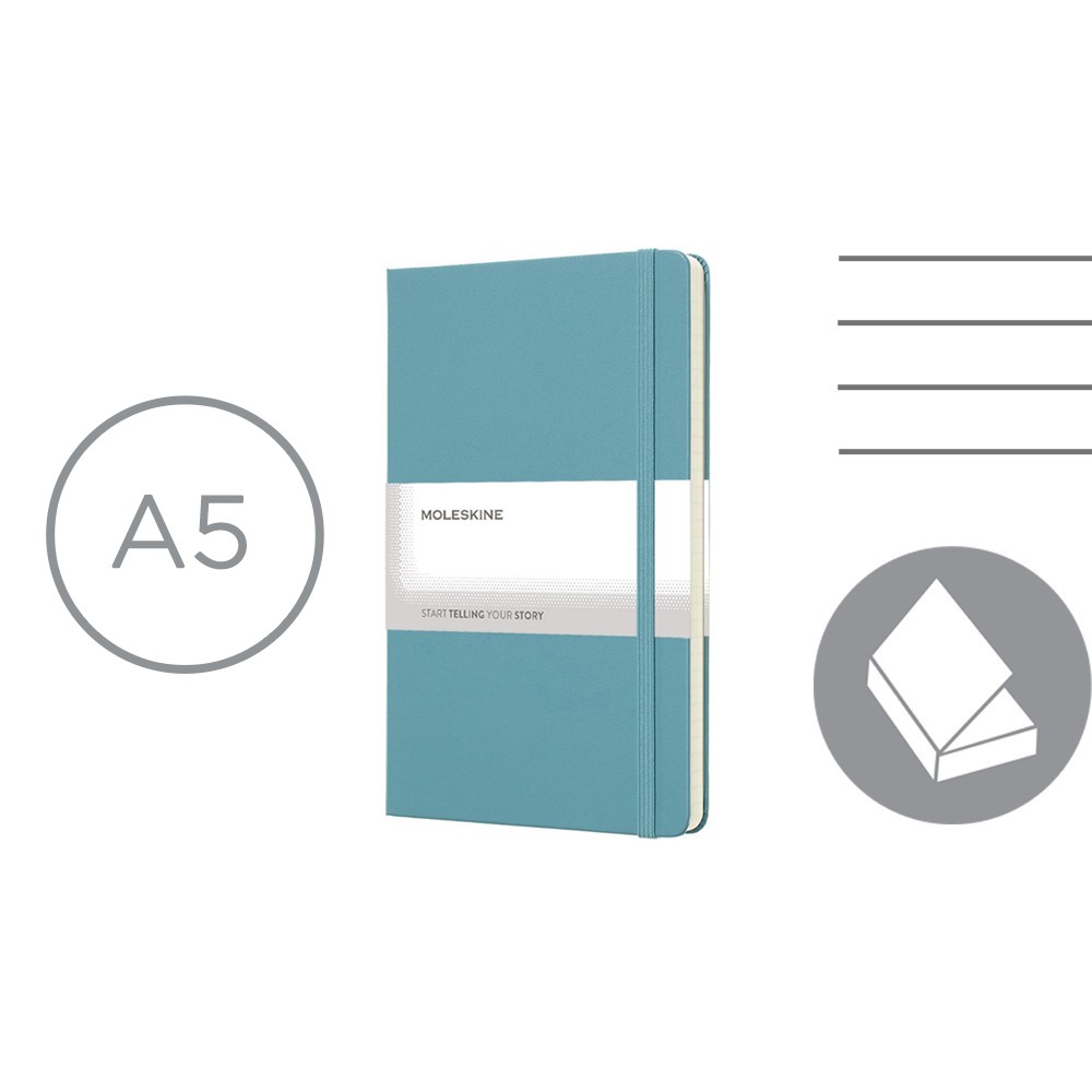Linkovaný zápisník v pevných deskách Moleskine, cca A5, 240 str - tyrkysová