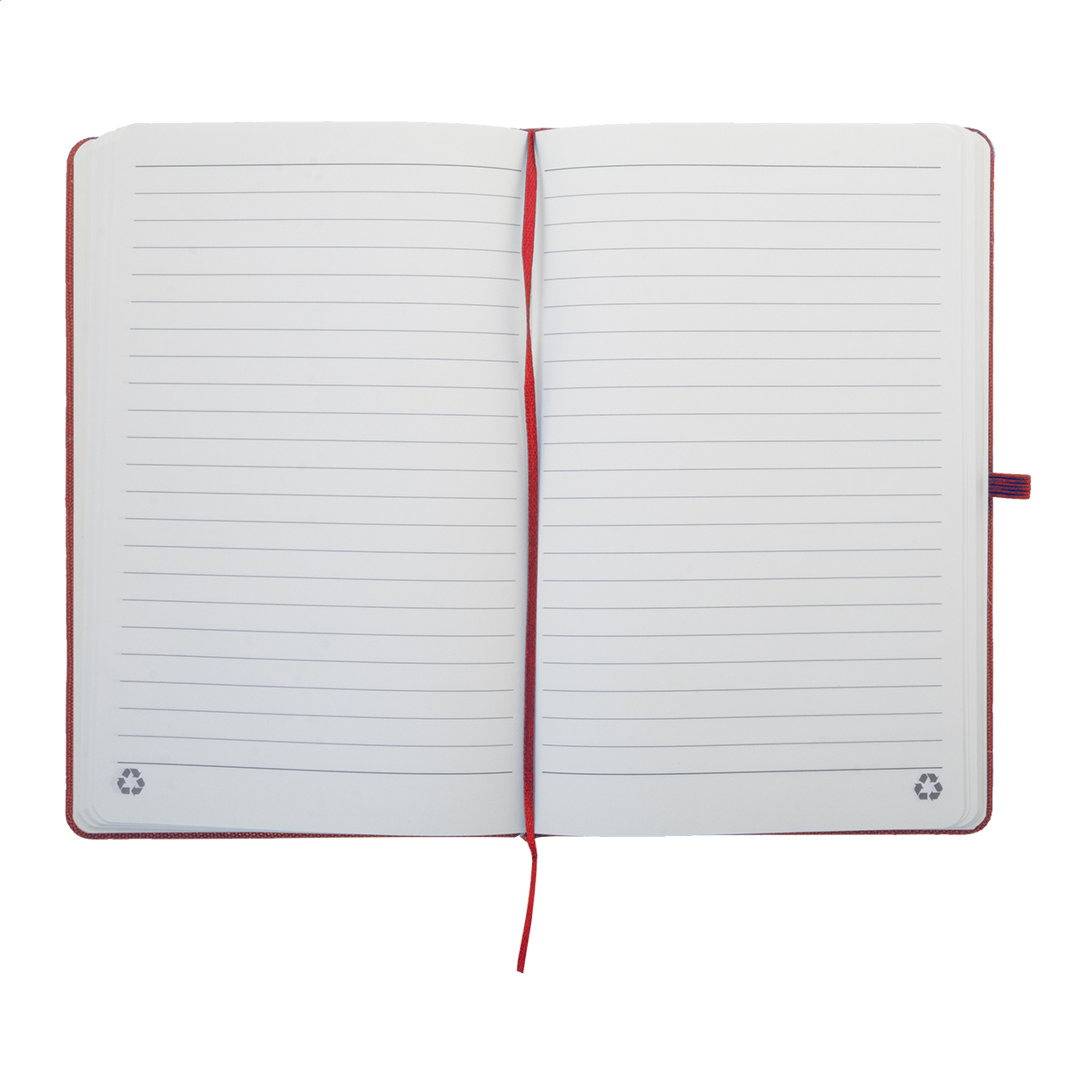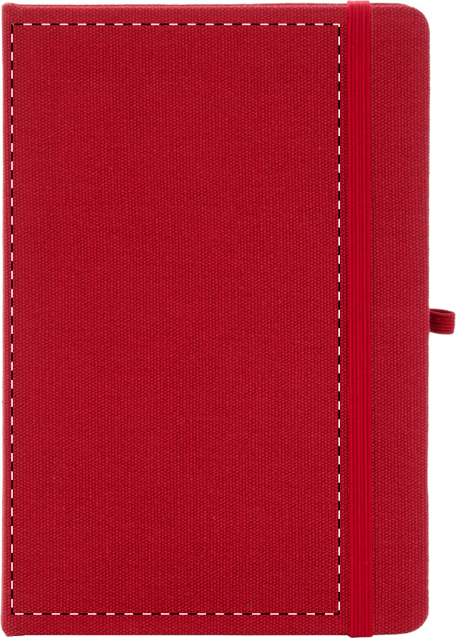 Blok potažený recyklovanou bavlnou s 80 linkovanými listy z recyklovaného papíru. Se záložkou v odpovídající barvě, gumičkou a držákem na pero. Velikost A5.