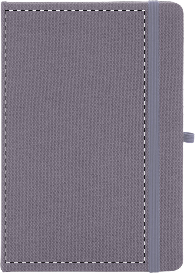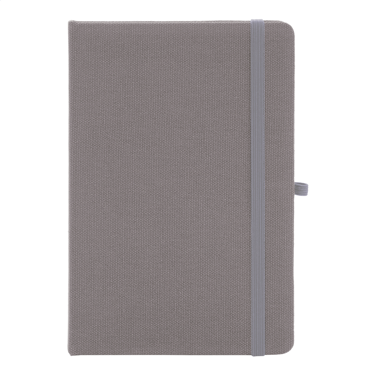 Blok potažený recyklovanou bavlnou s 80 linkovanými listy z recyklovaného papíru. Se záložkou v odpovídající barvě, gumičkou a držákem na pero. Velikost A5.
