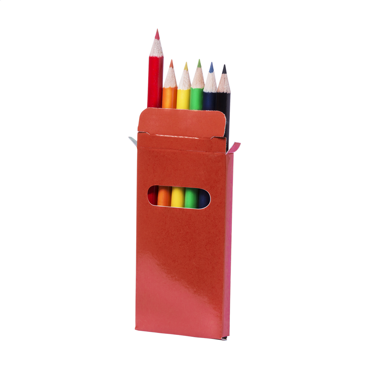 Dřevěné pastelky (6 ks) v barevné papírové krabičce.