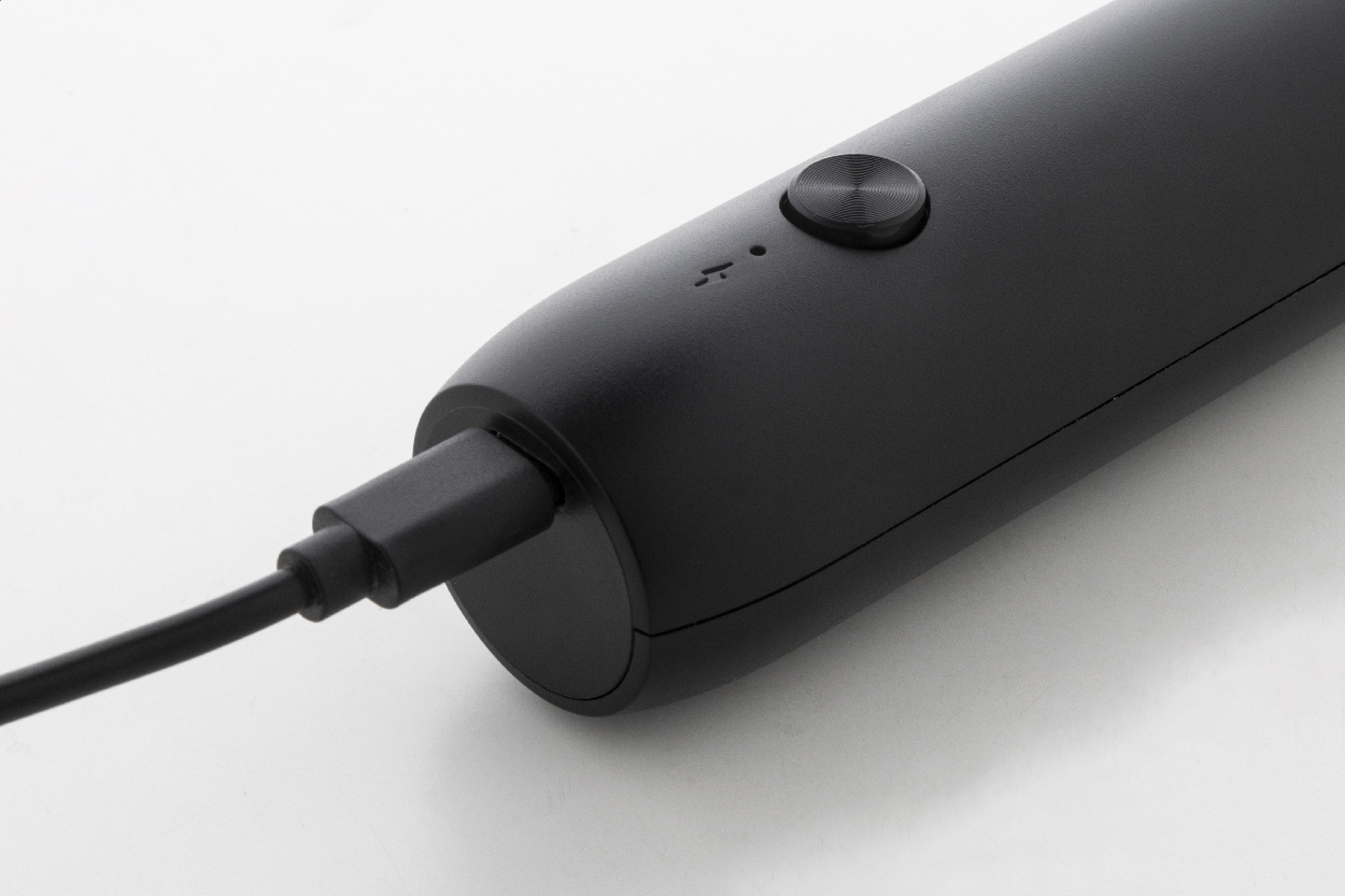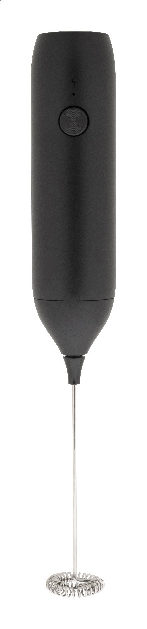 Elektrický ruční napěňovač mléka v pouzdře z recyklovaného ABS s matným povrchem. S vestavěnou dobíjecí baterií přes USB (500 mAh). Včetně nabíjecího kabelu USB-C.